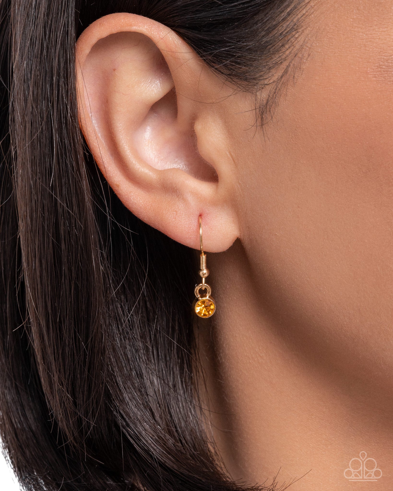 Lined with topaz rhinestones that gradually fade to light-colored topaz rhinestones along its stem, a curly gold maple leaf, painted in Burnt Orange hues that gradually fade to light orange, glides along a dainty gold snake chain for an adorably autumnal display. Features an adjustable clasp closure.